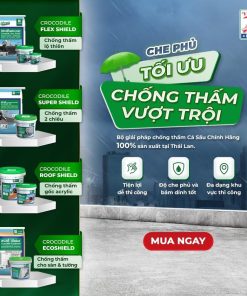 - Crocodile Roof Shield chống thấm gốc Acrylic có độ đàn hồi lớn hơn 500%, bịt kín các vết nứt vỡ.